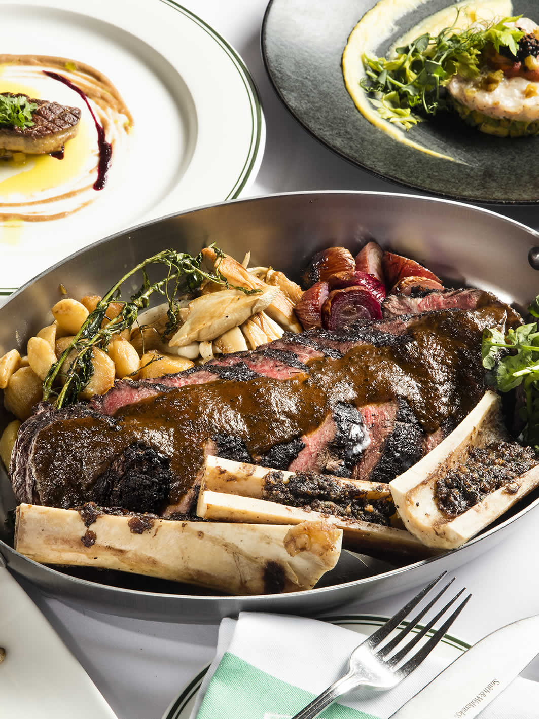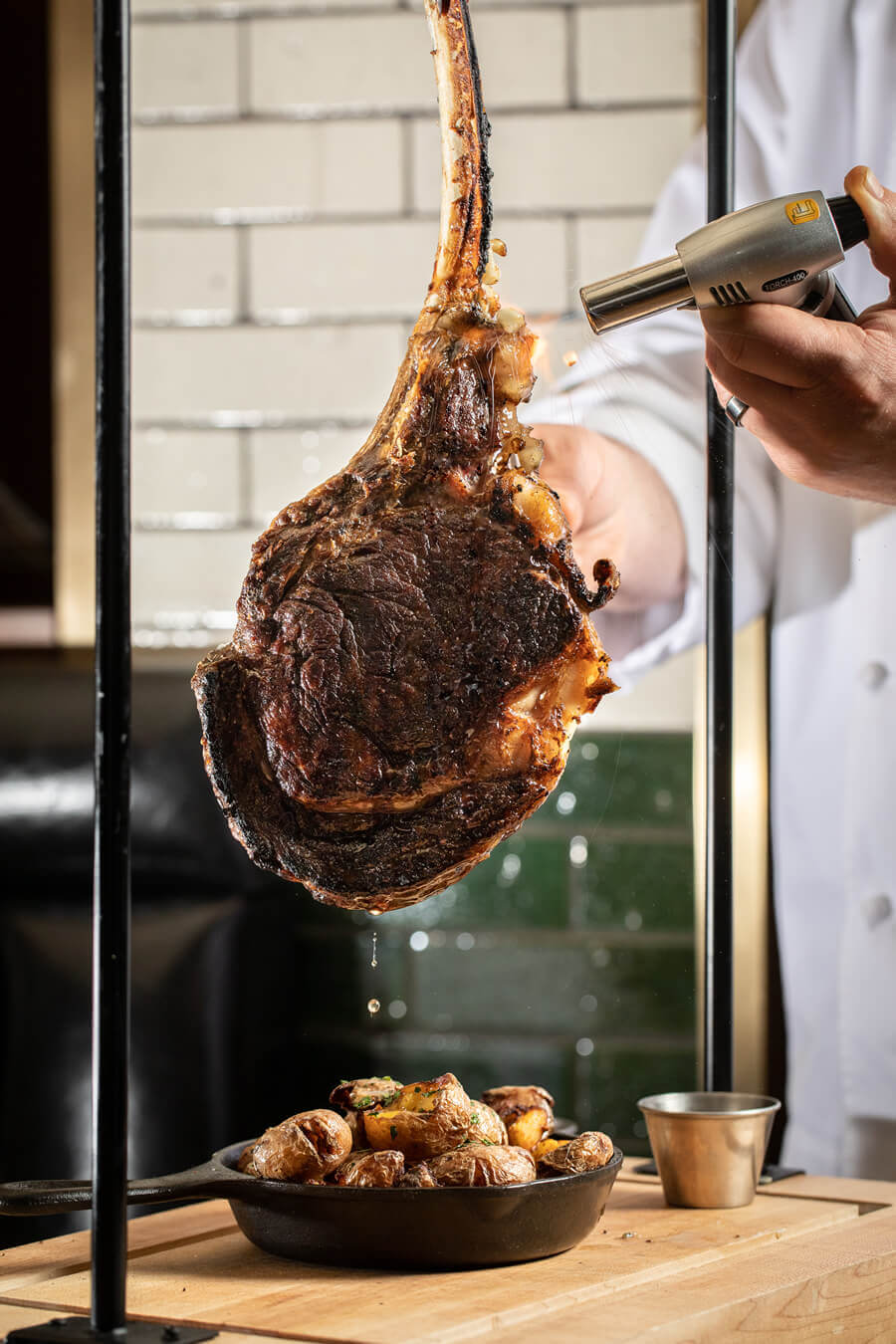 An icon of indulgence. Our 44 oz. bone-in American Wagyu ribeye is masterfully grilled and hand-seared for a rich, smoky finish. Served tableside with flair, this showstopping cut delivers a dramatic experience and unforgettable flavor in every bite.